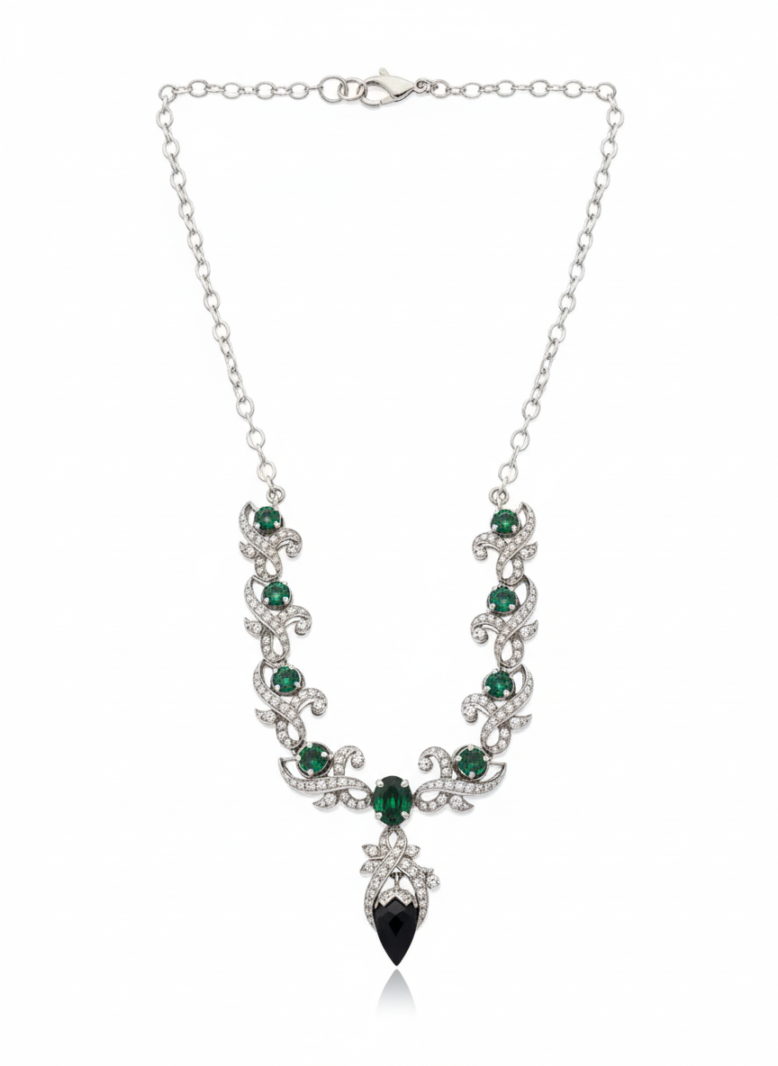 Krishnacrafts Sterling Silver Necklace with green Stones
